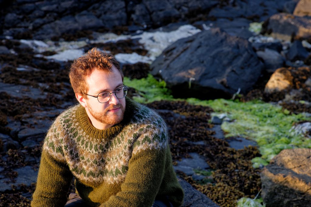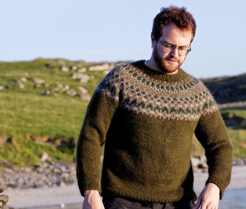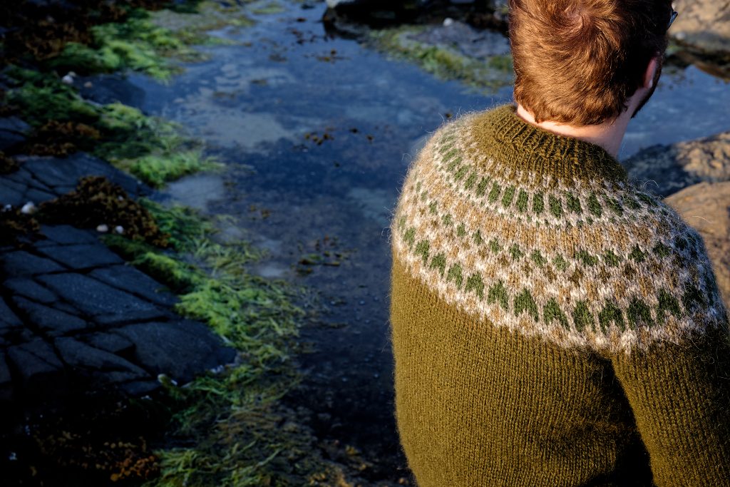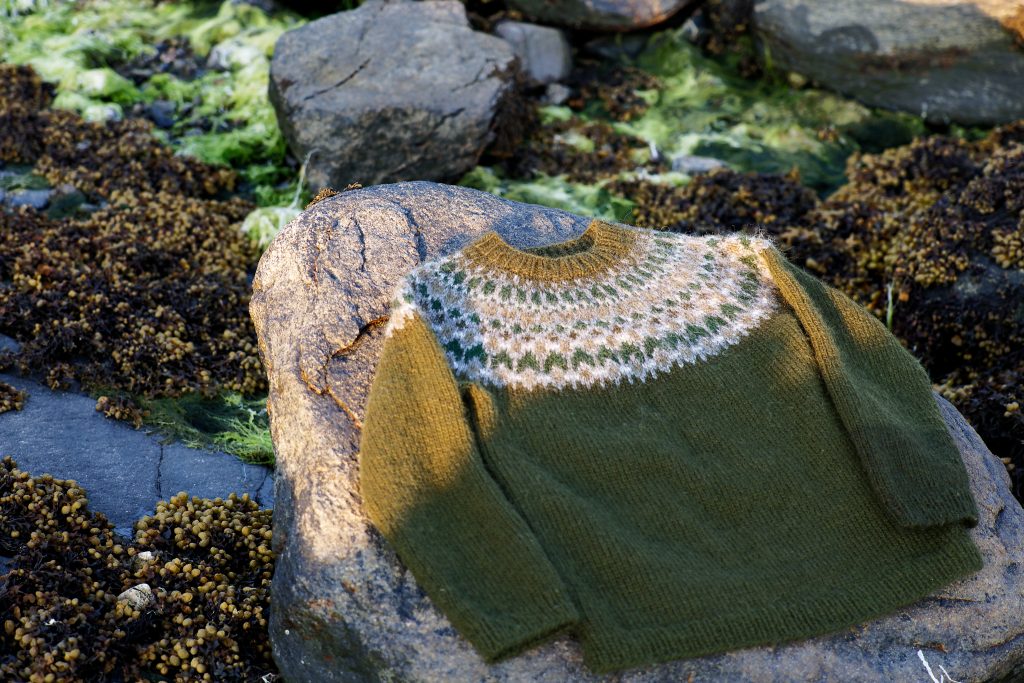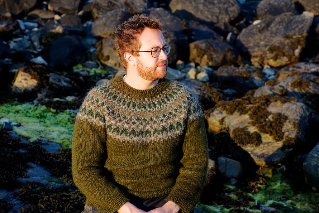 Molagan is a contemporary jumper design crafted using traditional techniques to capture the stunning shades and shapes of the pebble-strewn Atlantic shore. Knitted in Alafoss – the extra thick Icelandic pure wool, this jumper will contend with the coldest ocean breeze.