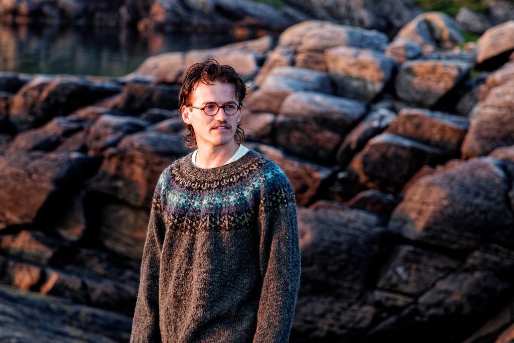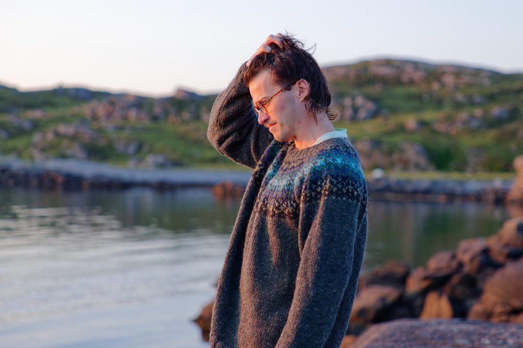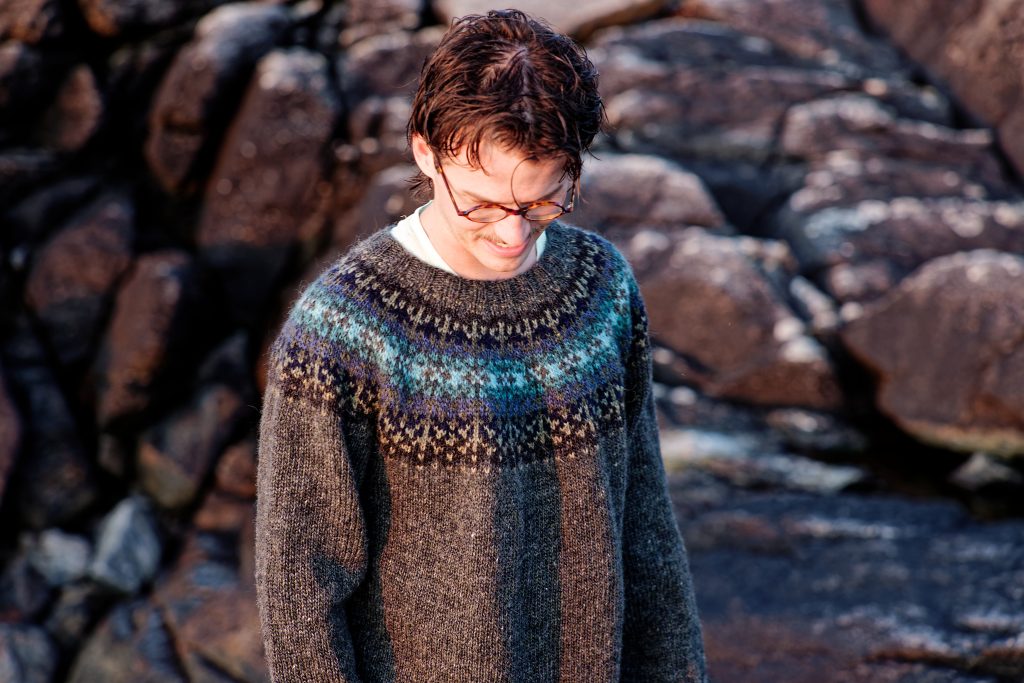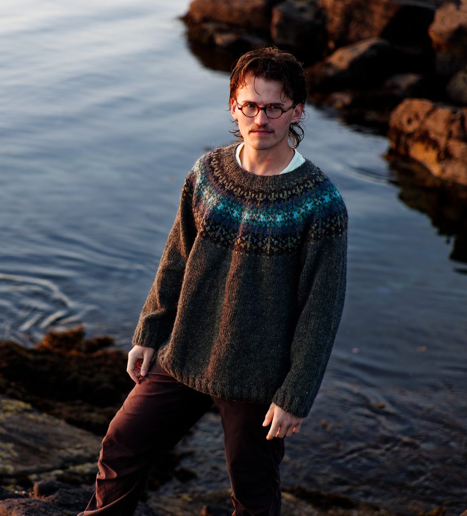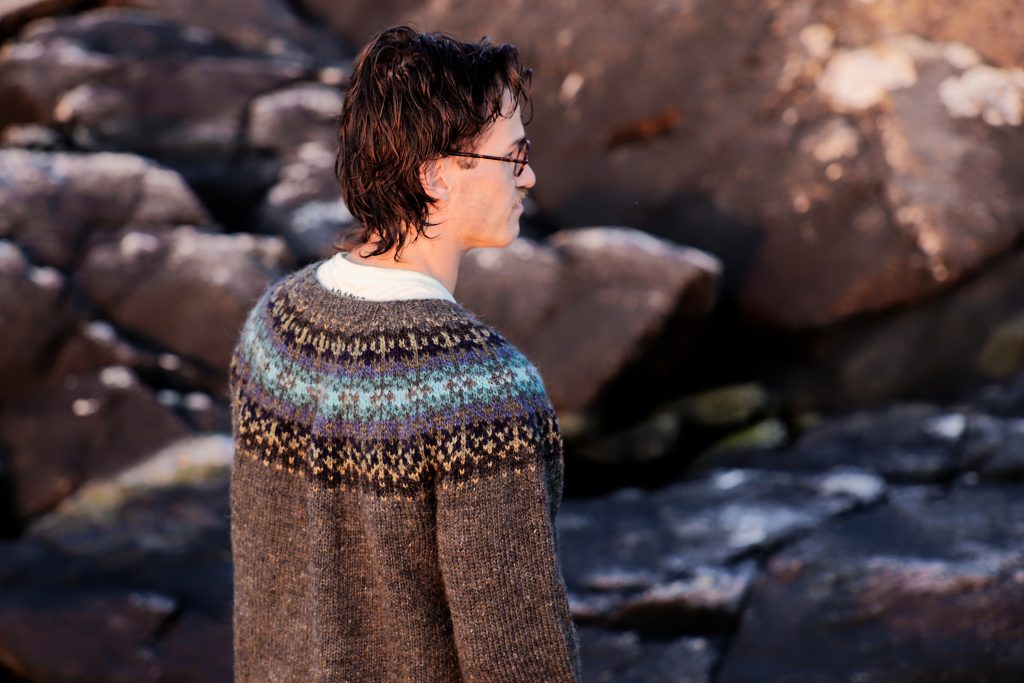 Rockpool is a contemporary jumper design crafted using traditional techniques to capture the soft seaweed greens, pebble greys and ocean blues of these enigmatic miniature lagoons.